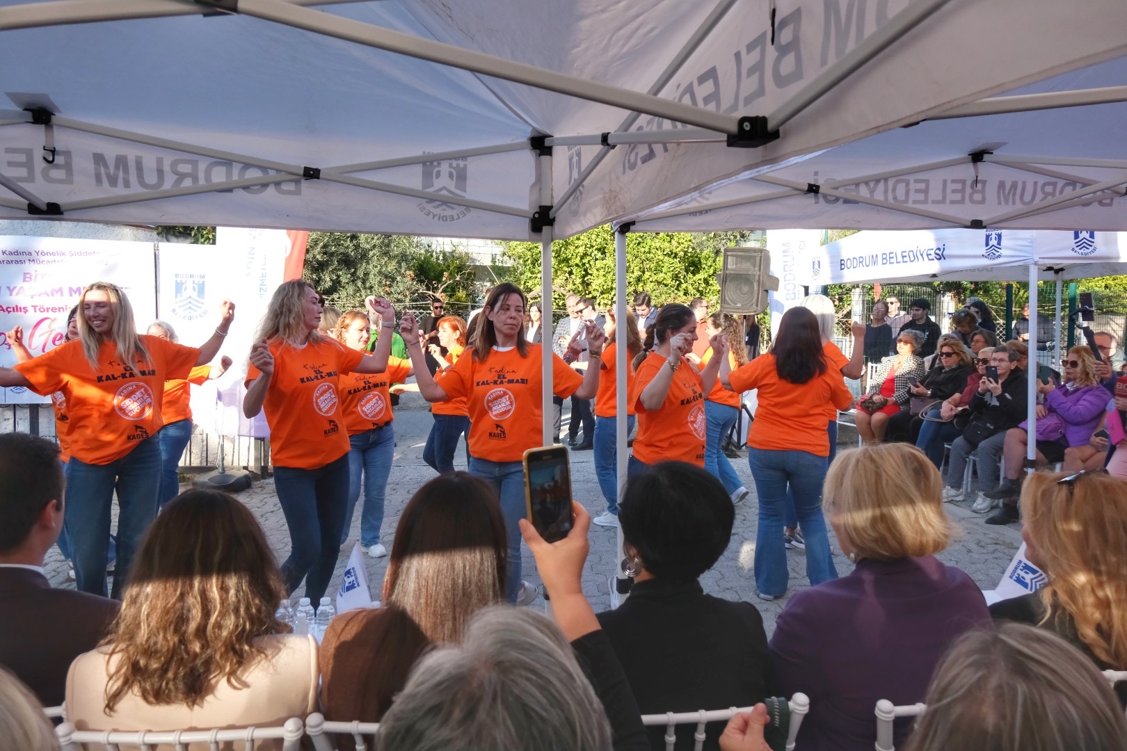 Konuşmaların ardından üzerinde “Kadına Şiddet İnsanlık Suçudur” mesajını taşıyan tişörtleriyle Bitez Mahalle Muhtarlığı halk oyunları ekibinin gösterisi katılımcılar tarafından beğeniyle takip edildi.