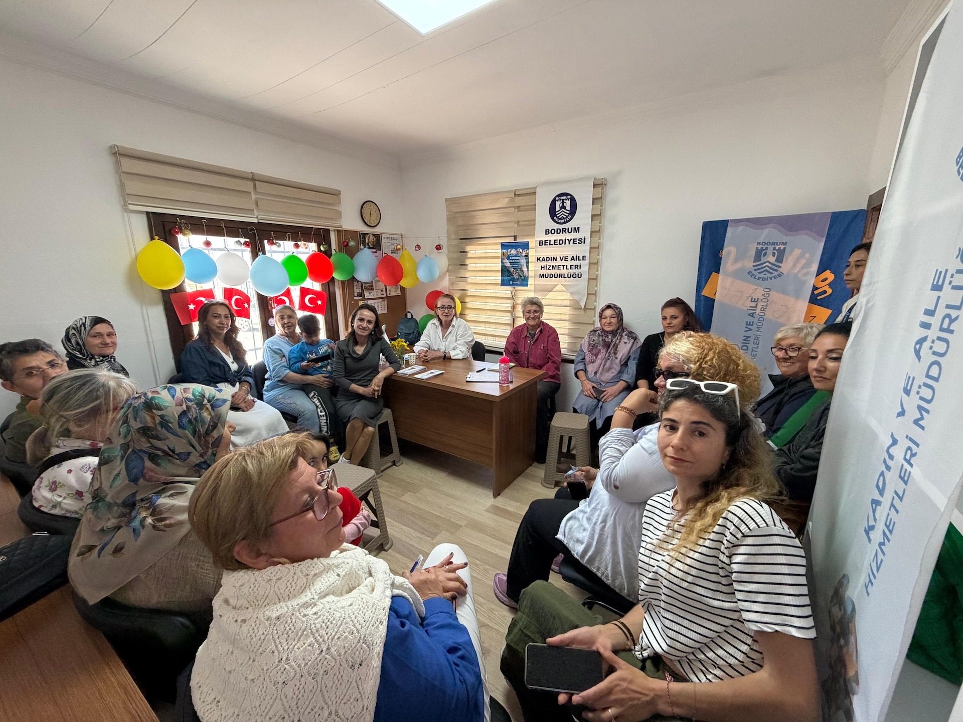 Kadın ve Aile Hizmetlerinin atölye çalışmaları kapsamında 29 Nisan Çarşamba günü gerçekleşen söyleşiye; Bodrum Belediyesi Dirmil Kadın Mahalle Meclisi Üyeleri, Bodrum Kadın Kolektifi Derneği Üyeleri ve vatandaşlar katıldı. Bodrum Belediyesinin ev sahipliğinde düzenlenen etkinlikte, Kadın ve Aile Hizmetleri Müdürlüğü personelleri de hazır bulundu.