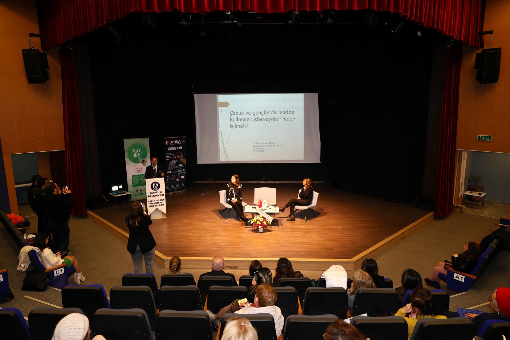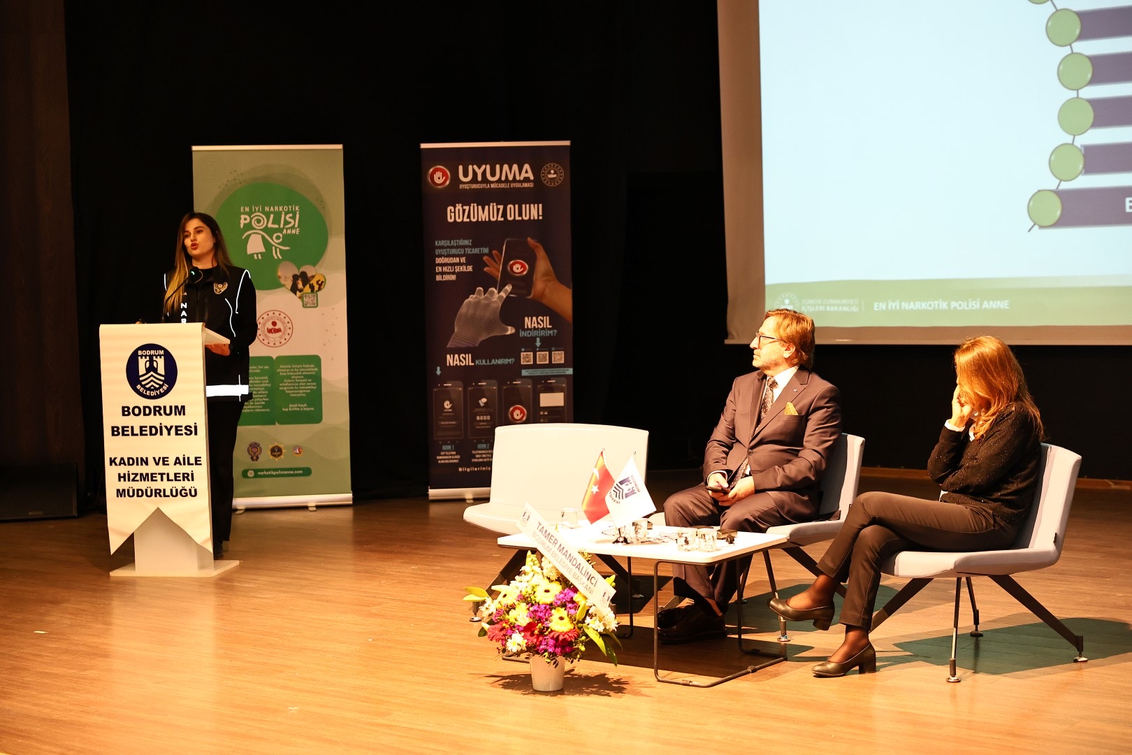 Bodrum Belediyesi Kadın ve Aile Hizmetleri Müdürlüğü tarafından organize edilen program, Bodrum İlçe Emniyet Müdürlüğü Narkotik Suçlarla Mücadele Büro Amirliği ve Muğla Barosu Bodrum İlçe Temsilciliği iş birliği ile Nurol Kültür Merkezi’nde gerçekleştirildi. Programa Bodrum Belediye Başkanı Tamer Mandalinci’yi temsilen Başkan Yardımcısı Tanju Aksu, Kadın ve Aile Hizmetleri Müdürü Gözde Çakıroğlu ve vatandaşlar katıldı.