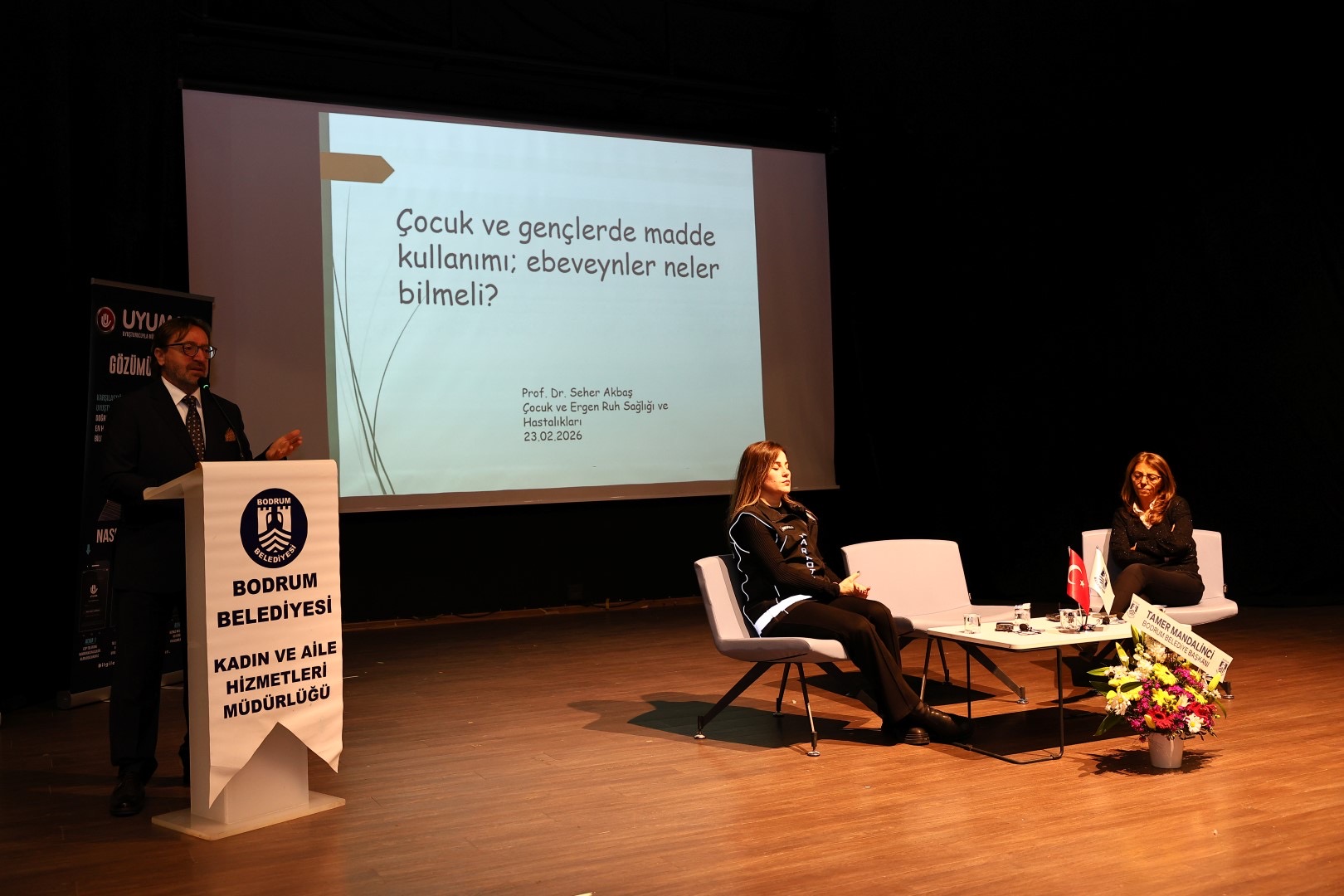 Bodrum Belediyesi Kadın ve Aile Hizmetleri Müdürlüğü tarafından organize edilen program, Bodrum İlçe Emniyet Müdürlüğü Narkotik Suçlarla Mücadele Büro Amirliği ve Muğla Barosu Bodrum İlçe Temsilciliği iş birliği ile Nurol Kültür Merkezi’nde gerçekleştirildi. Programa Bodrum Belediye Başkanı Tamer Mandalinci’yi temsilen Başkan Yardımcısı Tanju Aksu, Kadın ve Aile Hizmetleri Müdürü Gözde Çakıroğlu ve vatandaşlar katıldı.