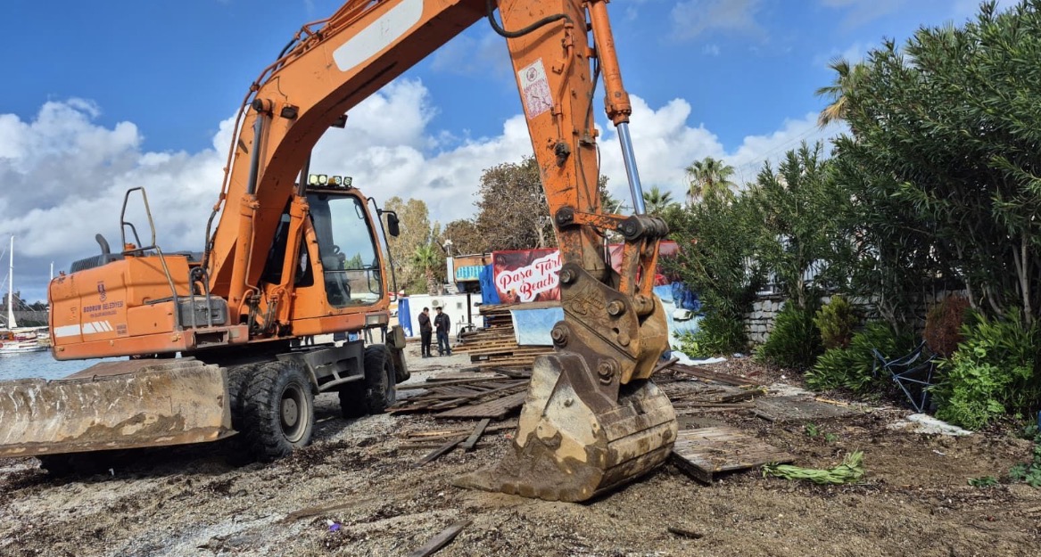 Bodrum Kaymakamlığı koordinesinde; Bodrum Milli Emlak Müdürlüğü, Bodrum Belediyesi ve Bodrum Bölge Liman Başkanlığı ekiplerince Kumbahçe Paşatarlası plajında kaçak yapılara yönelik yıkım çalışması gerçekleştirildi. Sabah saatlerinde bölgeye gelen ekipler, yıkım öncesinde yapıların içerisindeki eşyaların tahliyesini yaptı.Tahliye işlemlerinin ardından ekipler, kaçak yapılar başta olmak üzere plaj üzerindeki çok sayıda eklentiyi yıkarak alanı temizledi. Karadaki çalışmalar sürerken, Bodrum Bölge Liman Başkanlığı ekipleri de denizde tonoz temizliği gerçekleştirdi. Ayrıca atıl durumda bulunan ve sahipsiz olduğu belirlenen teknelerin kaldırılması için çalışma başlatıldı.Polis ve sahil güvenlik ekiplerince bölgede güvenlik önlemi alındı. Plajda yıkım ve temizlik çalışmalarının aralıksız devam ettiği belirtilirken, yıkım işlemlerinin yarın Kumbahçe sahilinde sürdürüleceği ifade edildi.