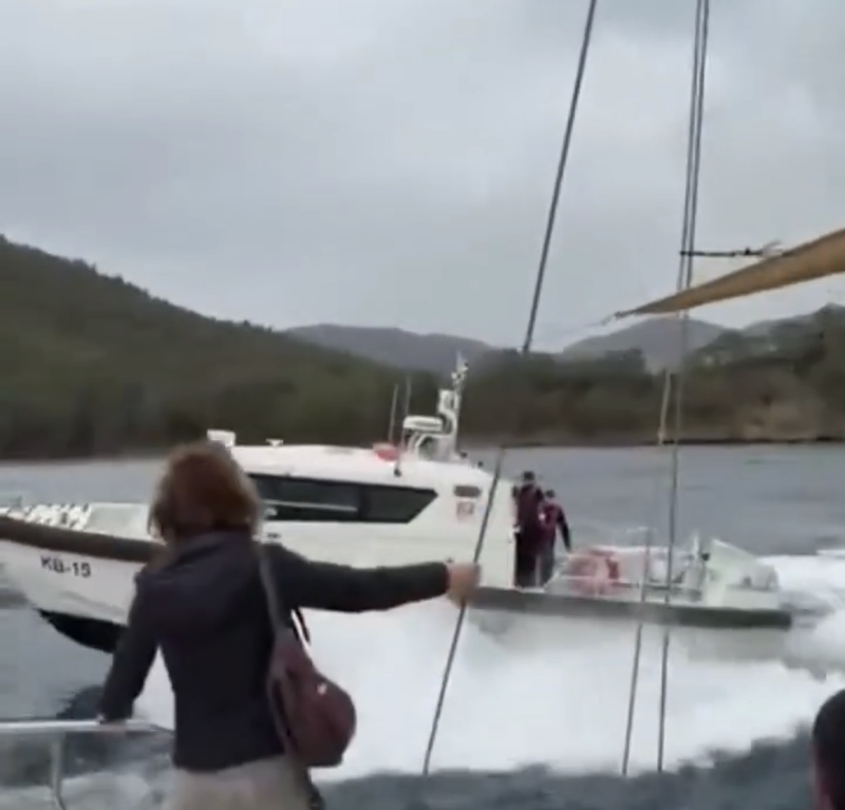 Göcek’te doğayı katleden iş makinaları ve koya dökülen betonları protesto eden çevrecilerin tekneyle gerçekleştirdiği eyleme müdahale edilmesi tepki çekti.